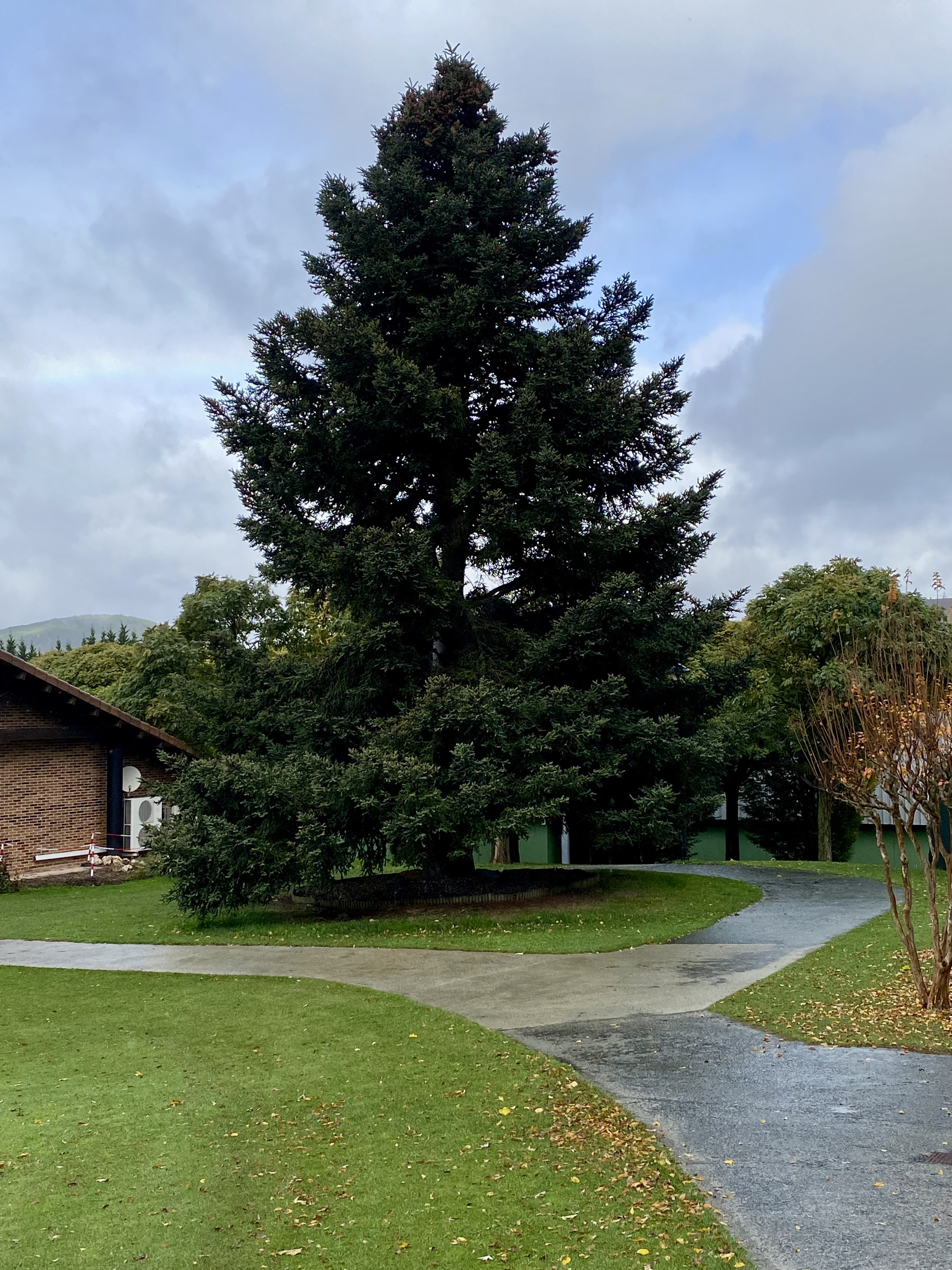 Su nombre científico es Abies pinsapo y se encuentra ubicado entre el gimnasio y la guardería. Es un buen ejemplar de esta especie, autóctona de varias sierras andaluzas.