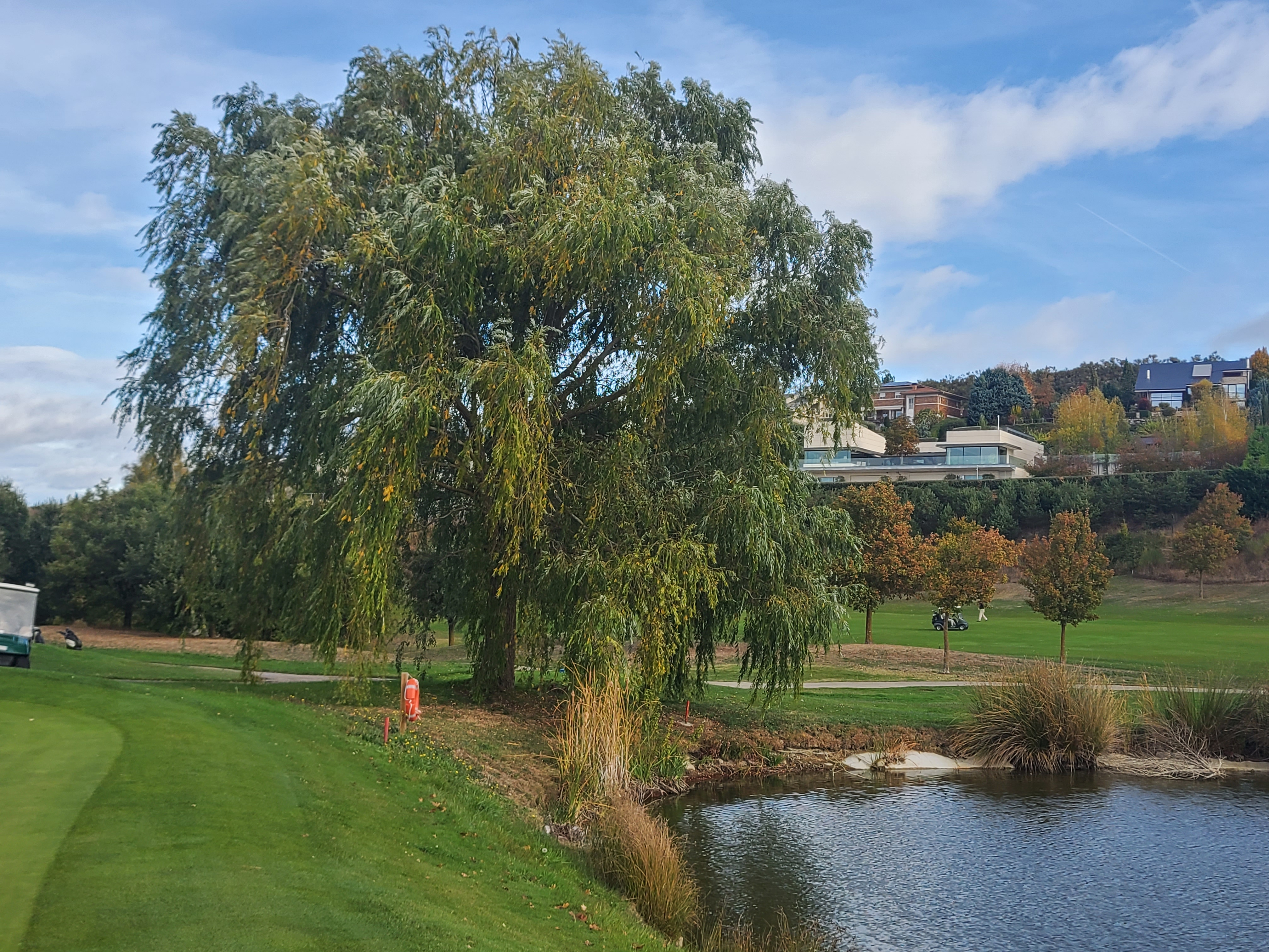 Su nombre científico es Salix alba y se encuentra ubicado a la derecha del tee de amarillas, en el borde del lago.