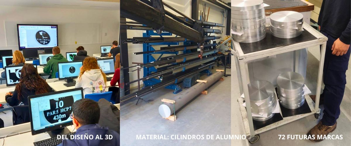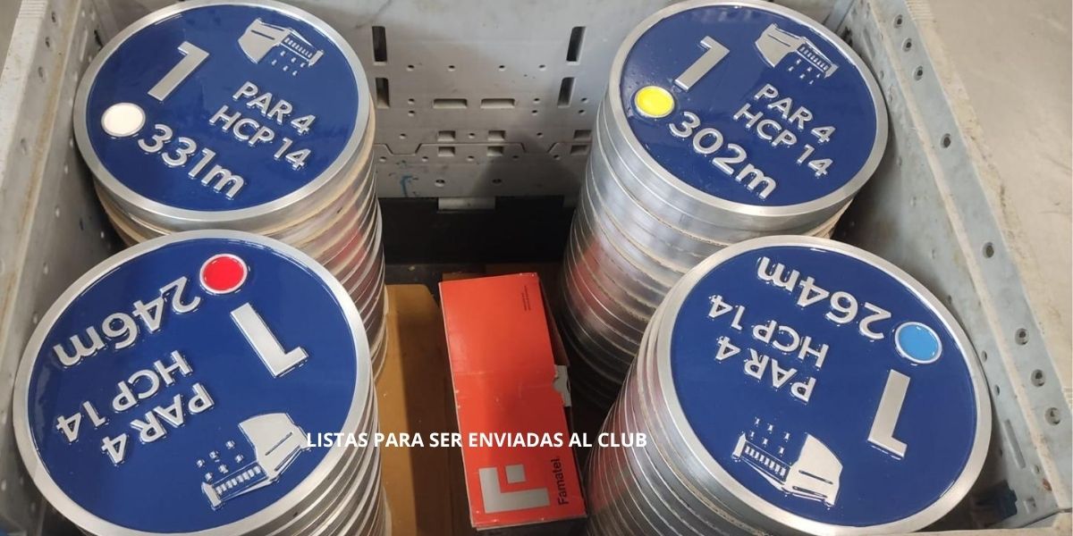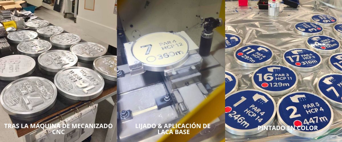 Si has salido recientemente al campo, es probable que hayas reparado en estas marcas de salida: circulares, en aluminio, con el número de hoyo, el par, el hándicap y la distancia grabados en relieve, y el escudo del club. Lo que quizás no sabías es que detrás de cada una de ellas hay un estudiante de FP, una máquina CNC y un proyecto educativo de verdad.