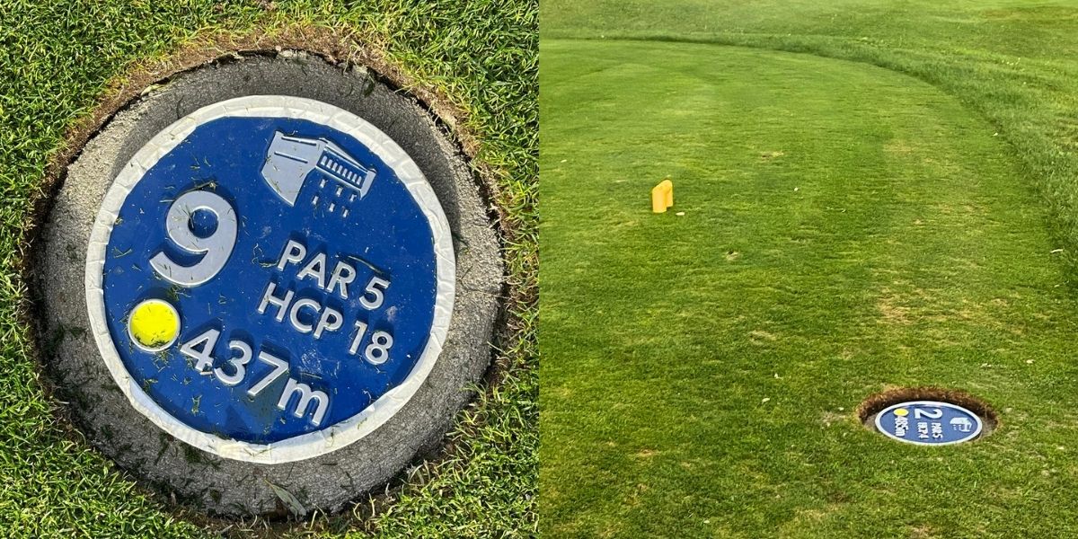 - Grabado en relieve del hoyo, par, hándicap, distancia y logo del club